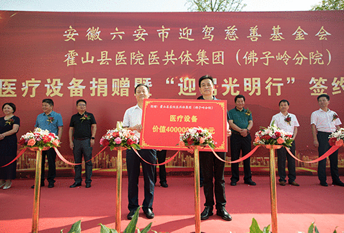 8月26日,安徽六安市迎驾慈善基金会·霍山县医院医共体集团(佛子岭分院)医疗设备捐赠暨“迎驾光明行”签约仪式在佛子岭分院新院区隆重举行。县领导李玉武、尹如江、苏昊、张润之、余龙松、贺新建,集团公司领导倪永培、程培华、丁保忠、秦海、杨照兵、胡兴华,迎驾慈善基金会领导张平、张华、姚圣来、朱红霞等出席仪式。