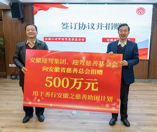 仪式上,迎驾慈善基金会与安徽省慈善总会签订了捐赠协议,捐赠500万元用于“善行安徽之慈善助困计划”的实施。据悉,“善行安徽之慈善助困计划”由安徽省慈善总会和安迎驾慈善基金会联合实施,将于春节期间在乡村振兴工程的先行示范区、正常推进区、持续攻坚区,以及省级乡村振兴重点帮扶县区中选取霍山县、濉溪县、全椒县等10个县区,向这10个县区的部分困难对象提供每人2000元的资金救助,每县区各50万元。