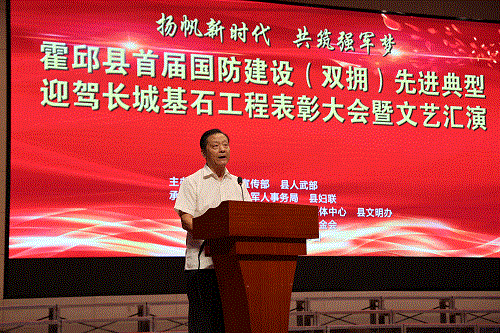 7月29日,霍邱县首届国防建设(双拥)先进典型表彰大会召开。六安市副市长、霍邱县委书记李煜,六安军分区副司令员李志强,霍邱县领导韦能武、王俊、程明、刘博,迎驾慈善基金会理事长张平、副理事长张华、副秘书长吕小红出席了大会。