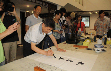 27日,蒙蒙细雨中,作家们参观了曲酒分公司、洞藏基地、佛子岭水库、酒文化博物馆等地,高度评价了迎驾贡酒的品质、文化和迎驾周边的生态美景。在曲酒分公司,大家们听介绍、看技艺、品原酒,兴致勃勃;在洞藏基地,大家们入洞穴、看山势、察环境,赞不绝口;在佛子岭水库,大家们乘游船、听歌声、观竹海,流连忘返;在酒文化博物馆,大家们看实物、谈酒史、挥巨笔,写尽春秋。28日,作家们就“大别山区生态建设”和“迎驾贡酒生态酿造”等生态文化课题展开研讨。作家们认为,生态是时代的命题,也是社会的难题,更是作家们的课题,在生态环境日益严峻,食品安全成为大众话题的今天,迎驾人能独享一片蓝天和一湾碧水,并以生态的方式酿造出如此高质量的迎驾酒,实在是可歌可赞。作家们说,当今世界解决生态问题不缺资金、不缺技术,唯独缺的是道德,缺的是良心;而迎驾提出“生态顶层设计”的理念正是时代的命题。尝了迎驾酒,看了大别山区的生态建设,强烈地感受到老区人民厚实的情怀,更加真实地感受到生态文明的重要。作家们说,迎驾提出“大自然是最好的酿酒师”这一概念,引发了人们对大自然的诸多联想,大自然是原始的想象生发之地,有了迎驾这样的爱护自然、敬畏自然、保护自然、建设自然的具体生动的实践,人类文明的最高境界才有了最好的注脚。