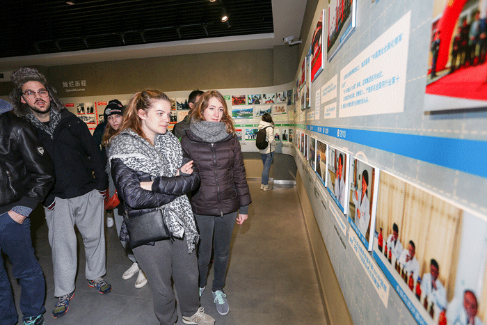 参观中,来自法国的小伙龙安国拿过话筒,当起了客串讲解员,向同行的骑手们介绍博物馆各展厅陈列内容、酒文化趣事、迎驾酿造工艺、品牌渊源以及迎驾发展历程等内容。骑手们随着他的脚步,在各展厅流连,兴味盎然地聆听讲解,拿起手机、相机拍照,并不时与同伴、博物馆讲解员交流,咨询迎驾产品、价格、销售规模等问题。