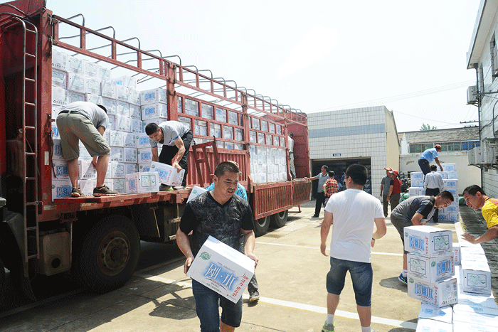 接到迎驾慈善基金会的指示后,安徽野岭饮料食品有限公司紧急调配物资,并安排工作人员装车。24日下午14时,满载3000箱剐水的大货车驶离野岭饮料公司,向灾区进发,以缓解受灾同胞的饮水之需。