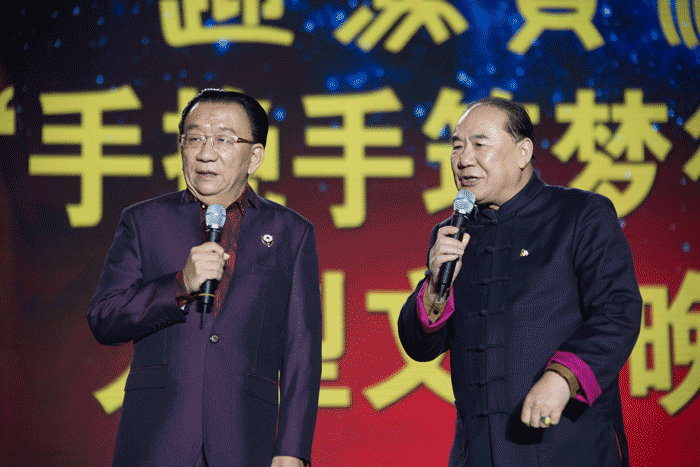 歌曲唱罢,著名评书表演艺术家刘兰芳、相声大师侯耀华和刘际先后上台,为观众带来了精彩的评书选段《张飞请诸葛》和相声《你说我说》,他们绘声绘色的表演深深吸引了现场观众的目光,赢得一片欢呼叫好声。