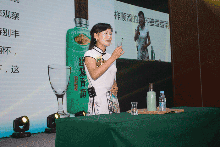随后,国家级白酒评委、迎驾酿造大师团队成员姜梅登上舞台,将如何品鉴一杯生态好酒的方法娓娓道来。全场嘉宾随着姜梅的讲解观、闻、品、悟,在氤氲全场的酒香中共同感受迎驾贡酒的生态品质。