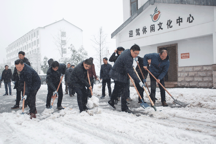 降雪发生后,1月4日一大早,集团立即组织广大干部职工参与到路面积雪清扫活动中,集团领导张平、程培华、秦海多次要求安全措施落实到位,并亲自上阵铲雪。在厂区主干道以及迎驾大桥路段,为确保通行安全,集团紧急调配铲车铲雪,并安排人员在路面撒盐融雪,确保下班前路面行车通畅。针对家住偏避偏远地区的员工,公司也提醒他们尽量就近住宿,以解决因冰雪天气带来的上下班出行不便问题,减少安全事故发生。
