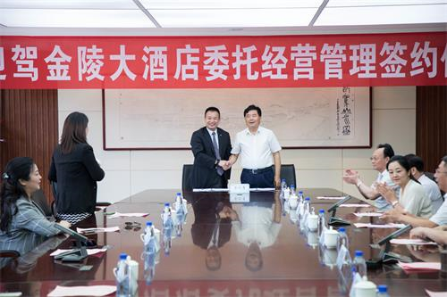 8月18日,迎驾金陵大酒店委托经营管理签约仪式在安徽迎驾集团隆重举行。霍山县委副书记苏昊,集团公司领导倪永培、程培华、丁保忠、张丹丹、杨照兵,南京金陵酒店管理有限公司总裁李成勇、副总裁王宇纯等出席签约仪式。