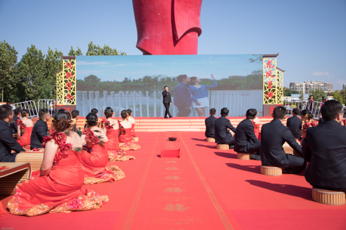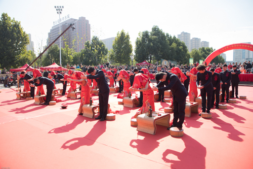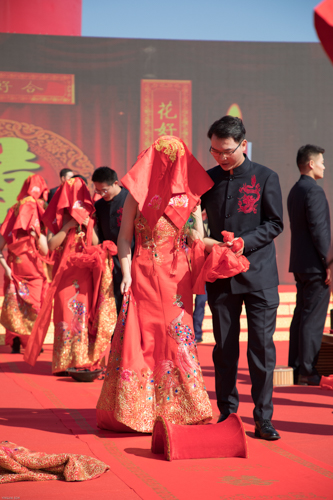 仪式隆重而不铺张。在中式婚礼司仪的引导下,20对新人身着传统礼服步入现场,依次进行迈火盆、跨马鞍、三叩九拜、挑盖头、结发礼、合卺酒、执手礼等环节,尽显传统婚礼仪式的庄重典雅,感受中华民族传统婚俗文化。著名歌手海来阿木来到现场,为新人们送上甜蜜歌曲和美好祝福。同时,安徽迎驾集团还为新人们准备了旅游券和迎驾洞藏酒券等贺礼。