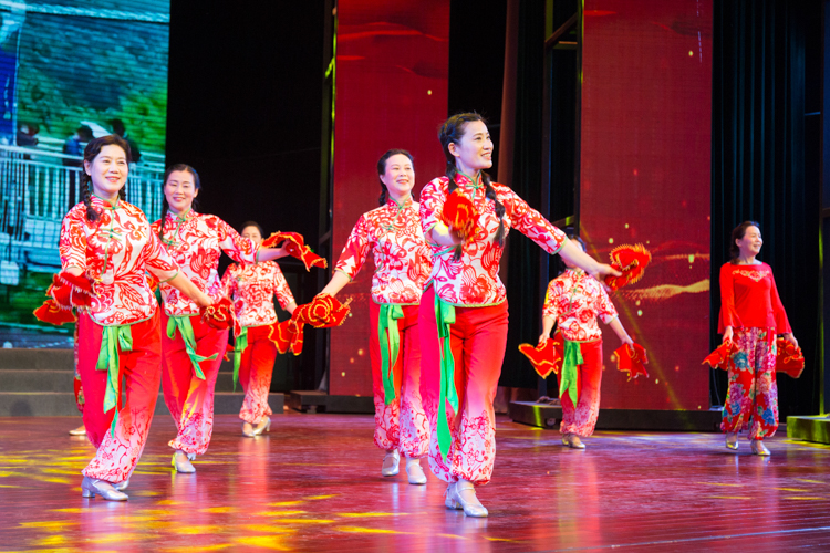 舞蹈《喜迎宾朋到霍山》拉开了演出的帷幕,配乐诗朗诵《爱情的故事》、黄梅戏《天子命诏》、音乐快板《全域旅游在霍山》、舞蹈《党旗颂》等一个个精彩的节目轮番上演,演员们精神饱满,他们用优美的舞姿、动听的歌声赢得了现场观众们的阵阵掌声。最终,慰问演出在合唱《我和我的祖国》的歌声中落下帷幕。