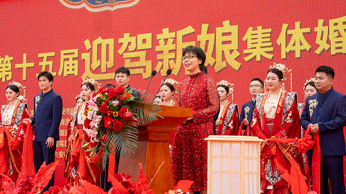苏曼在主婚词中向新人们送上了真挚的祝福。她表示,“迎驾新娘”集体婚礼以实际行动落实市委市政府关于文明创建的相关部署,倡导了文明节俭、健康向上的生活方式,以婚礼塑文明新风,以青春赋能城市。