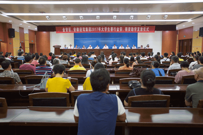 8月23日,金安区、安徽迎驾集团2017年大学生善行金安、捐资助学仪式在金安区会议中心举行,自金安区的40名来贫困学子共获得12万元助学金。金安区委常委、区委办主任宣红兵,金安区副区长黄媛媛,金安区慈善总会会长彭良国,迎驾集团副总裁、工会主席、慈善基金会副理事长程培华,慈善基金会副理事长黄必义,副理事长兼秘书长张华出席发放仪式。