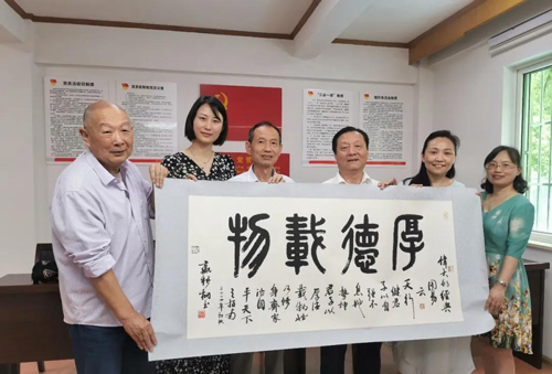 会后,纪武代表仁众教育基金会向迎驾慈善基金会赠送国家一级美术师嬴梧桐所书“厚德载物”书法作品一幅。