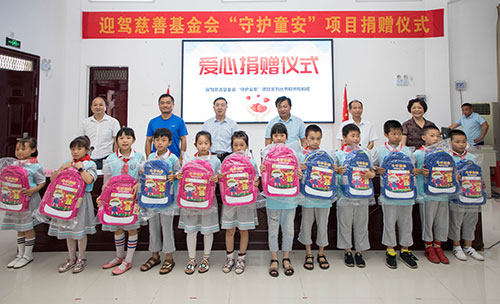 据悉,此次迎驾慈善基金会共捐赠“素质教育——守护童安”系列图书200套共计2000册、“守护童安”牌学生安全书包200个,总价值近8万元。