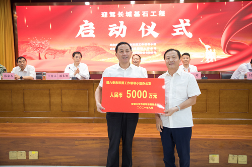 9月15日,“迎驾长城基石工程”启动仪式在六安市举行。安徽省退役军人事务厅副厅长高峰,市党政军领导叶露中、潘东旭、付新安、陈家本、黄体沈、李敏、刘洪洁、孙学龙,中国酿酒大师、迎驾集团总裁倪永培,集团党委副书记胡兴华,迎驾慈善基金会领导张平、姚圣来、朱红霞等出席启动仪式。