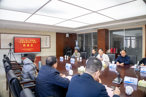 3月7日,安庆一中、安庆二中实施“迎驾教育基石工程奖”洽谈签约仪式在迎驾集团举行,安庆市政府副市长王赵春,霍山县委常委、副部长朱静,中国酿酒大师、安徽迎驾集团党委书记、董事长、总裁倪永培,集团副总裁、工会主席程培华,迎驾慈善基金会理事长张平,副理事长张华、姚圣来,秘书长朱红霞等出席仪式。