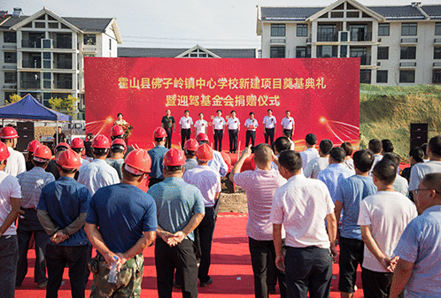 仪式上,迎驾慈善基金会向佛子岭中心学校新建项目捐赠人民币5千万元;罗文宣布佛子岭中心学校新建项目正式开工;出席仪式的领导共同为佛子岭中心学校新建项目奠基培土。