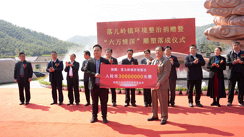 山口明珠添新彩,“六万情深”爱心扬。4月8日,落儿岭镇环境整治捐赠暨“六万情深”雕塑落成仪式在落儿岭镇举行。
