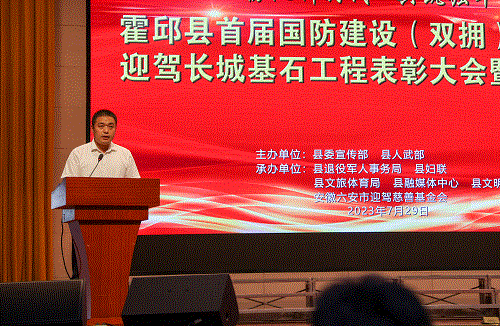 7月29日,霍邱县首届国防建设(双拥)先进典型表彰大会召开。六安市副市长、霍邱县委书记李煜,六安军分区副司令员李志强,霍邱县领导韦能武、王俊、程明、刘博,迎驾慈善基金会理事长张平、副理事长张华、副秘书长吕小红出席了大会。