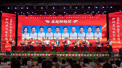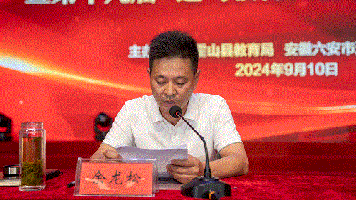 县委副书记、县委教育工作领导小组组长余龙松代表县四个班子,向辛勤工作在一线的广大教职员工、教育工作者,以及为霍山教育事业作出突出贡献的离退休老教师致以节日的问候,向受到表彰的优秀教师、优秀学生表示热烈的祝贺,向始终坚持助学兴教、回馈桑梓的迎驾表示崇高的敬意,向一直以来关心支持霍山教育事业发展的社会各界人士表示衷心的感谢。希望全县广大教育工作者要厚植教育情怀,争当“师者匠心、铸魂育人”的时代楷模,坚守师德,当好品格之师;潜心教学,当好学问之师;乐教爱生,当好仁爱之师,牢记教育初心,精心铸魂育人,为加快建设教育强国贡献力量。寄语各位同学要聚焦成人成材,勇做“奋发向上、能担重任”的栋梁之材,涵养爱党爱国的情怀,养成勤奋好学的态度,树立自立自强的品质,努力成长为合格的社会主义建设者和接班人。