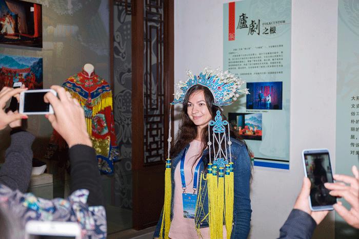 在霍山县委常委、副县长周贤林,迎驾集团副总裁、工会主席程培华陪同下,俄罗斯公务员们走进迎驾酒文化博物馆,开启了中华酒文化之旅。展厅内,他们边走边看,兴趣盎然地听取对博物馆、酒文化以及迎驾发展情况的介绍,凄婉动人的睡美人传说、丰富生动的酒闻趣事、独特传统的酿造技艺、迎驾跨越发展的辉煌历程,无不给他们留下了深刻的印象。公务员们不时停下脚步,在博物馆内拍照留念。