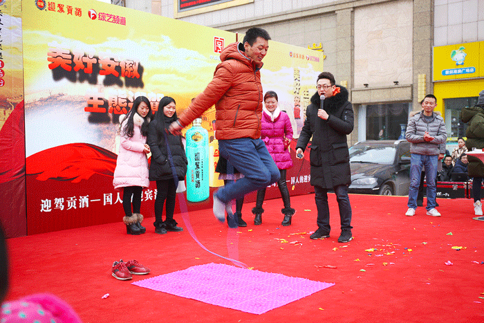 尽管天气寒冷,活动仍吸引了近千名群众的到来。由安徽电视台春晚开场舞舞蹈团队带来的动感舞蹈拉开了活动的序幕,随后,本次活动的三轮游戏大作战——行酒令、鸿运当头、迎驾闯三关正式开始。在场群众纷纷积极响应、踊跃参与,展现了霍邱人民的热情,也体现了迎驾贡酒的号召力、影响力。游戏中还穿插了精彩的节目表演,架子鼓《西游记+江南style》、对唱《你最珍贵》、歌曲《载歌载舞》、相声表演《欢歌笑语》和歌曲《竹根下的剐水》等节目赢得了全场观众的阵阵掌声。现场的摇摇乐环节更是将活动推到了最高潮,30名幸运观众获得了迎驾美酒大礼包。