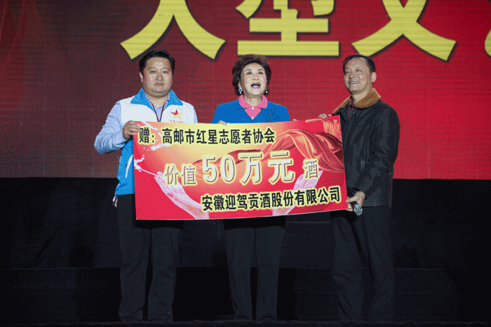 晚会还特别举行了捐赠仪式,在著名评书表演艺术家刘兰芳的见证下,迎驾集团副总裁、党委副书记、纪委书记张平代表迎驾向高邮市红星志愿者协会捐赠了价值50万元的物资,用于公益慈善事业。
