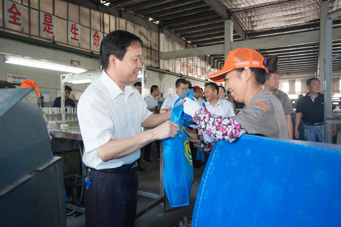 在溢彩公司窑炉车间,项跃文了解了当前生产情况,看望慰问了冒着高温坚守在生产一线的工人们,详细询问了他们的工作生活情况,感谢他们顶着高温坚守岗位,为企业和全县经济社会发展作出的贡献,并叮嘱他们要注意劳逸结合,做好防暑降温工作,保持身体健康。