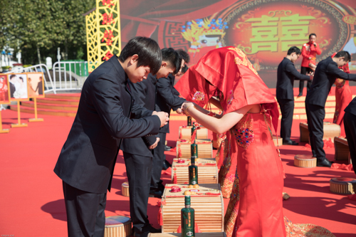仪式隆重而不铺张。在中式婚礼司仪的引导下,20对新人身着传统礼服步入现场,依次进行迈火盆、跨马鞍、三叩九拜、挑盖头、结发礼、合卺酒、执手礼等环节,尽显传统婚礼仪式的庄重典雅,感受中华民族传统婚俗文化。著名歌手海来阿木来到现场,为新人们送上甜蜜歌曲和美好祝福。同时,安徽迎驾集团还为新人们准备了旅游券和迎驾洞藏酒券等贺礼。