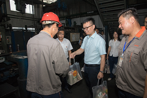 在溢彩公司窑炉车间,翁金成给奋斗在工作岗位的工人们送上了防暑降温物品,仔细询问他们在高温天气下工作情况,并感谢他们为企业平稳运行、县域经济发展所做出的贡献。他叮嘱大家要注意防暑降温,加强自身安全防护,保重身体。同时还要求溢彩公司要坚持“以人为本、安全第一”的理念,科学合理安排工作时间,落实好防暑降温各项措施,保障工人身心健康。