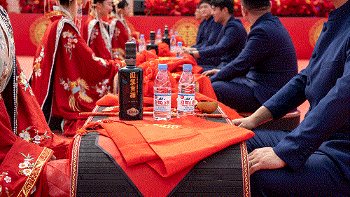 在中式婚礼司仪的引导下,20对新人身着传统礼服步入现场,按照隆重热烈、古典简朴的婚礼仪式,依次进行了迈火盆、跨马鞍、三叩九拜、挑盖头、结发礼、合卺酒、执手礼等环节,牵手结发,许下相伴一生的誓言,共同开启美好幸福的新生活。仪式喜庆而不失典雅,浪漫而不乏温情,让在场的所有人感受到了中华民族传统婚俗文化的魅力。