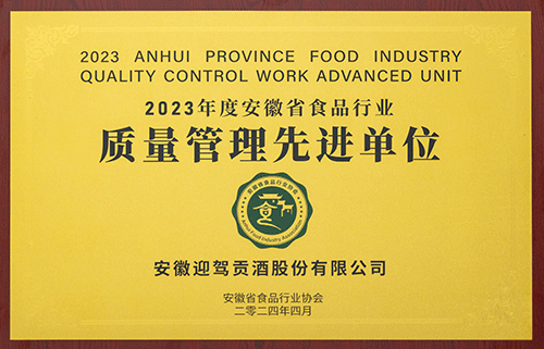 迎驾贡酒荣获2023年度安徽省食品行业乡村振兴示范企业、2023年度安徽省食品行业质量管理先进单位等多项殊荣,安徽迎驾贡酒股份有限公司副总经理广家权荣获“安徽省首届食品质量大师”称号。