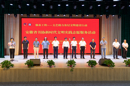 6月30日,安徽省书协新时代文明实践志愿服务联系点揭牌仪式在佛子岭镇中心学校举行,安徽省文联党组成员、主席、书记处书记陈先发,安徽省书协秘书长程多林,迎驾贡酒股份有限公司董事长倪永培,霍山县委副书记余龙松共同为联系点揭牌。
