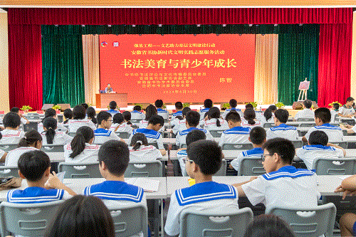 揭牌仪式结束后,各位书法家现场进行了创作,中书协书法评论与文化传播委员会委员、省书协副主席、省书协学术委员会主任、合肥市书协主席陈智还为佛子岭镇中心学校的师生带来了一场专题讲座,让师生们充分领悟到书法艺术的独特魅力!