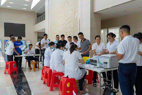 广大职工积极响应、踊跃参与,在工作人员的指导下有序填表、化验,现场一片热闹景象。此次献血共有150多名干部职工参与,115人血样化验合格并完成献血,累计献血35400CC。
