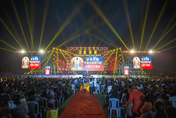 12月18日,由安徽迎驾贡酒股份有限公司主办的“迎驾贡酒·手挽手筑梦行动大型公益晚会”在高邮职校体育场精彩上演,在寒冬里为高邮市民带来一个激情燃烧的夜晚。迎驾贡酒股份有限公司总经理秦海在演出开始前致辞。他说,迎驾是全国著名酿酒企业,安徽大别山革命老区的支柱产业,公司的渊源企业为始建于1955年霍山县佛子岭酒厂。公元前106年,汉武帝南巡至今霍山县一带,当地官