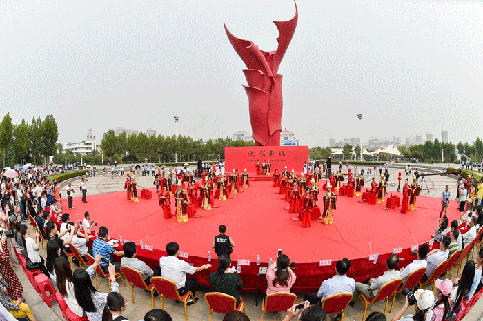“关关雎鸠,在河之洲。窈窕淑女,君子好逑……”9月20日,在悠扬的古乐声中,六安市第八届“迎驾新娘”集体婚礼在皋城广场隆重举行。20对新人穿上汉服、行汉礼、奏汉乐,上演了一场别具一格的汉式婚礼。“良辰吉时,佳偶天成;执礼者各执其礼,执事者各执其事。掌灯!新人入场。”伴随着庄严的古典喜乐,20对新人身着汉式婚礼袍服,脚踏红毯,在赞礼官带领下,优雅而庄重地步入典